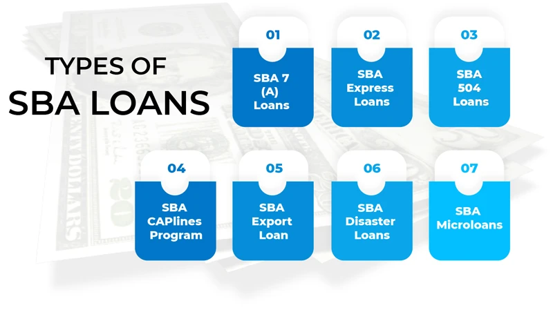 SBA offers different types of loans to provide opportunities to business owners in specific markets, difficult situations, and in need of small funding amounts. Let us take a look at 7 types of SBA loans offered under the SBA lending program: