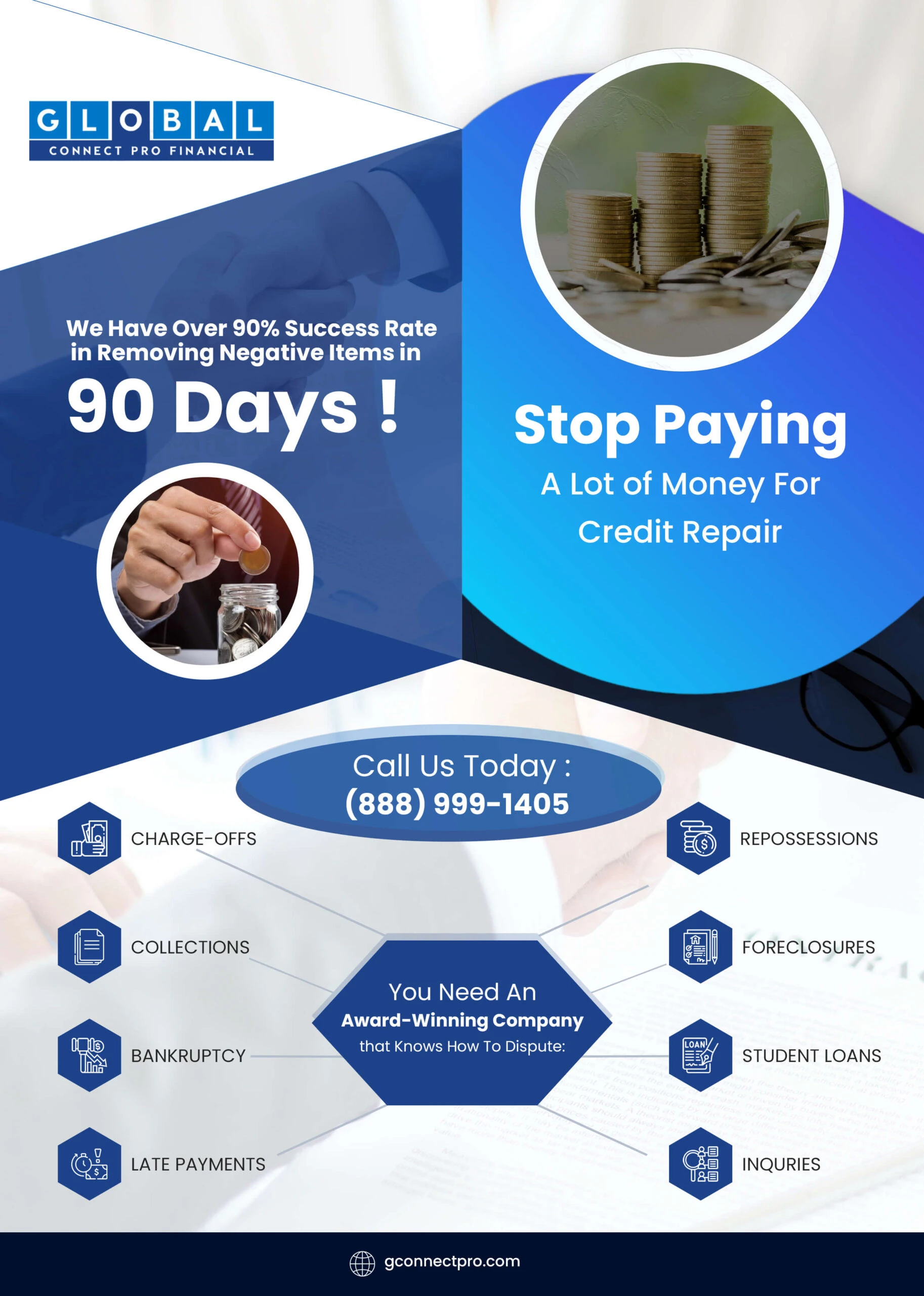 GConnectPro is here to help you meet your credit goals. Our credit repair services can help you work to remove the inaccurate or unfair negative items listed on your credit report. Let us help you improve your credit!